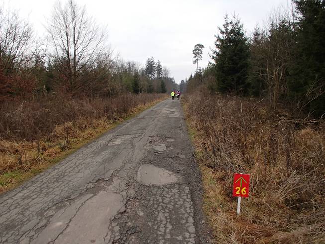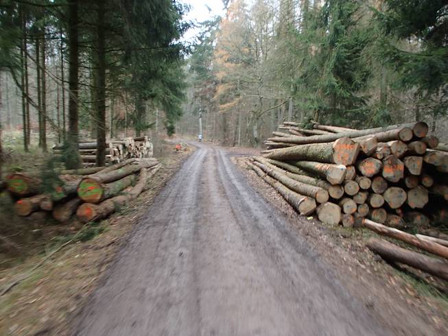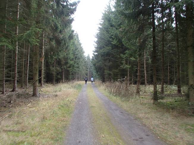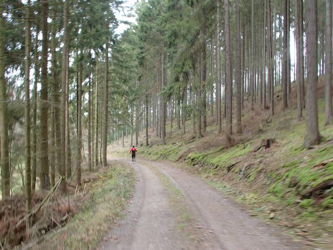 Stolzenberg / Jungfernkopf 12.47 Uhr / Km 19,5 Nach zwei schwierigeren Kilometern wurde es dann wieder etwas einfacher. Und auch eintöniger. Naja, Wald gab es sowieso jede Menge. |