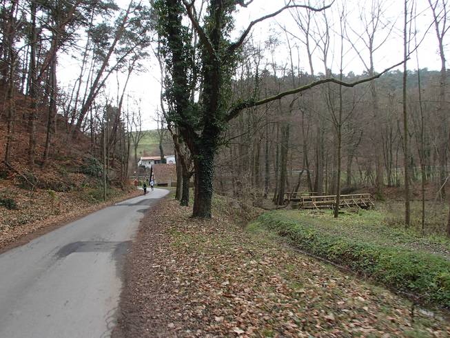 Am Ofenkessel / Burggrund(Landau) 12.26 Uhr / Km 16,0 Unten angekommen war ich total kaputt. Alleine auf flacher Strecke würde ich niemals genug Zeit raus-holen können, um den Rest zu kompensieren. Dafür gab es einfach nicht genug flache Passagen. |