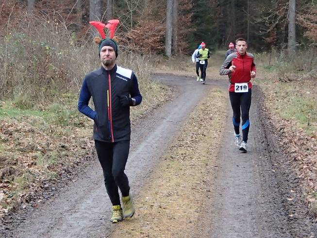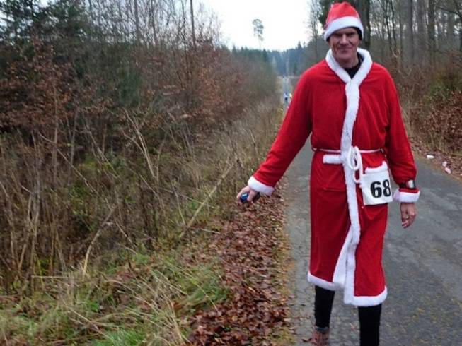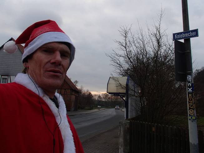 Siebringhäuser Hecke/ Langenwald 13.48 Uhr / Km 29,0 Dann wurde der Nikolaus auch noch von "seinem" Rentier überholt. |