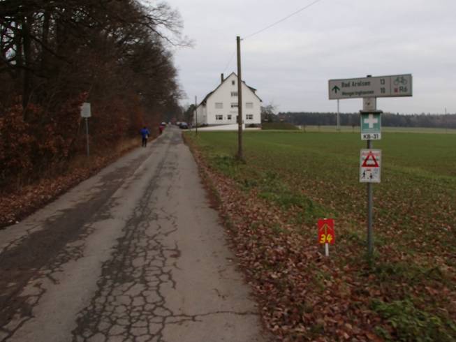Wetterholz 11.32 Uhr / Km 5,5 Die Strecke hier kannten wir schon vom Marathon Pfingsten 2011. Damals ging es allerdings in die andere Richtung. Und es war viel grüner. |