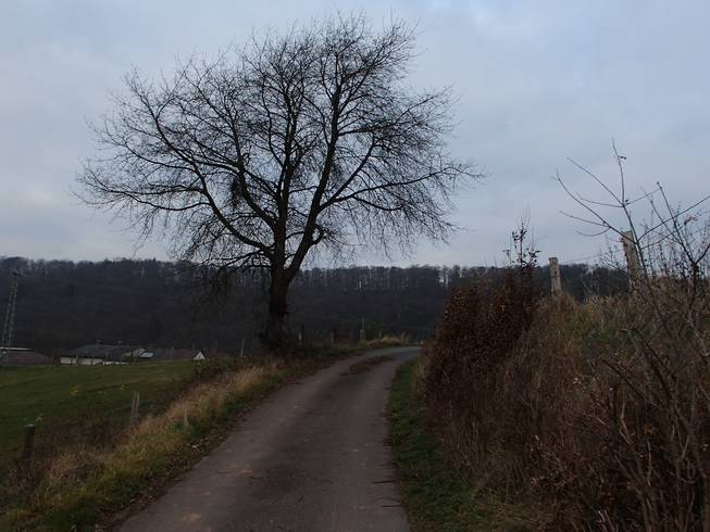 Siebringhäuser Hecke / Wattertal 13.41 Uhr / Km 28,0 Leicht bergauf oder stärker bergauf. Egal. Ich ging nur noch. Und das brachte als Nebeneffekt eine rasche Auskühlung mit sich. |