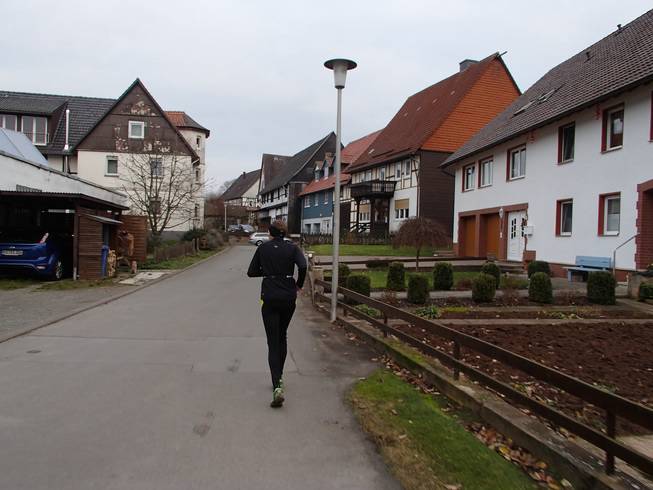 Braunser Hammerweg 14.52 Uhr / Km 38,2 Letztes Mal gab es hier zumindest ein paar wenige Zuschauer. Und da kam ich hier später durch. Ja, noch später. |