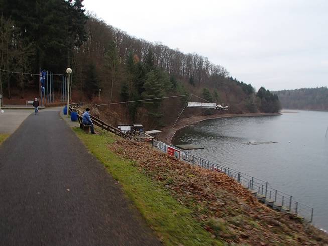 Twistesee 10.49 Uhr Steil bergab ging es von der Twistesee-Halle runter an den See. Das wäre bei Glätte lustig geworden. |