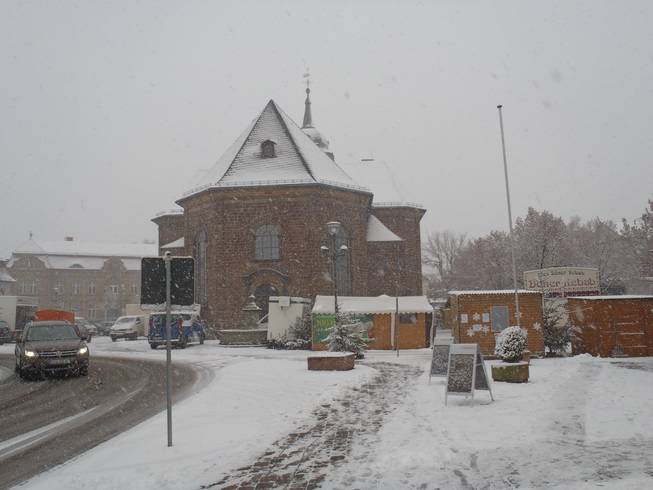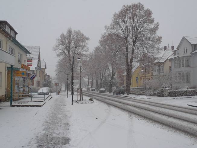 Schloßstraße 9.34 Uhr Und glatt war es auch. Auf dem Kopfsteinpflaster aber auch nicht so überraschend. |