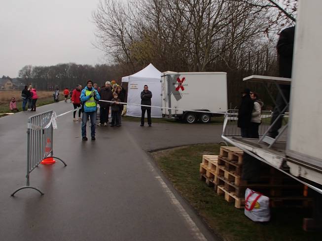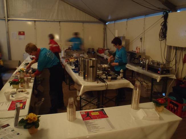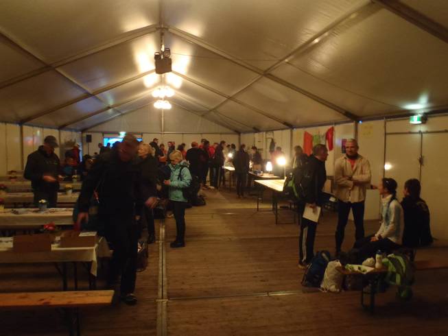Sportplatz DJK Twisteden 8.48 Uhr Ein schönes warmes Zelt war Heimat von der Startnummernausgabe und anderen administrativen Dingen. Umkleiden und Duschen gab es eine Haus weiter. |