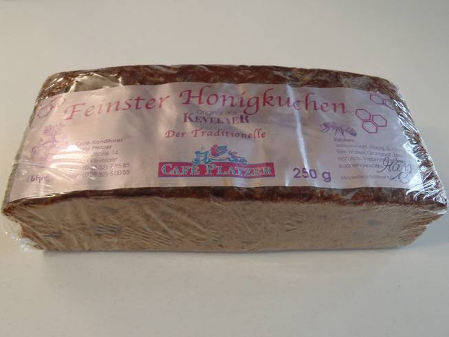 Kevelaer-Marathon einen Honigkuchen, die Gebäck-Spezialität der Gegend.