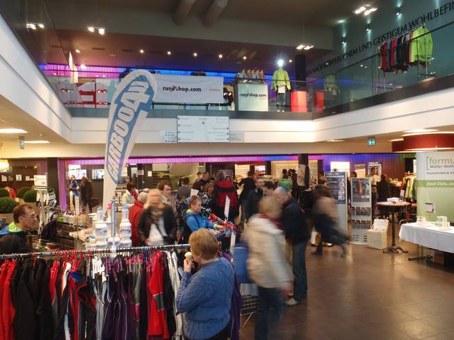 Bad Füssing Johannesbad Im Vorraum der Thermen war die Marathon-Messe untergebracht. Und die Startunterlagen konnte man sich hier auch abholen. Es sei denn, man hatte eine Unterkunft über den Veranstalter in einem anderen Hotel gebucht. In dem Fall lagen die Start-unterlagen im Hotel bereit. |