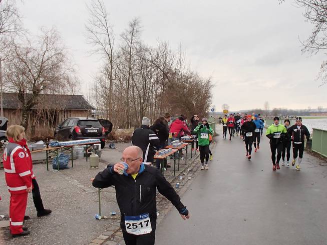 Hart Km 9,9 / 10.54 Uhr Der zweite Verpflegungs-punkt. Es gab auch warme Getränke. Zum Glück. |