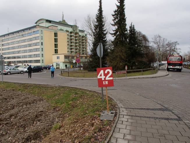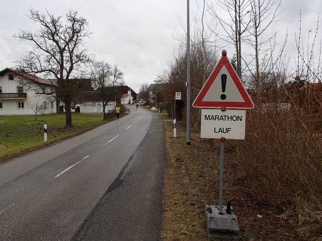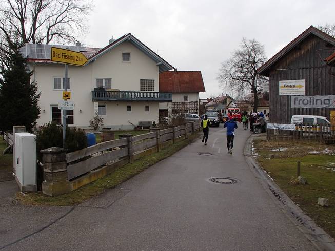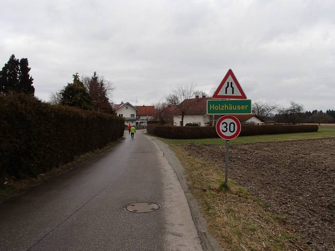 Holzhäuser Km 14,5 / 11.18 Uhr Der Ort heißt wirklich so. Aber mit den angeblich zwei Kilometern bis Bad Füssing war nix. Nicht nur, weil der Marathon-Kurs noch einen kleinen Umweg einlegte, auch auf direktem Weg war man nach zwei Kilometern nicht in Bad Füssing. Aber egal... las sich gut. :-) |