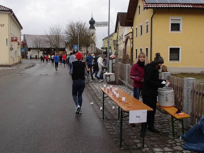Egglfinger Straße / PA60 Kirchham Km 5,5 / 10.30 Uhr Auf der ersten Runde gab es vier Verpflegungsstellen. Auf der zweiten Runde war noch eine fünfte in Saffer-stetten eingerichtet. Also neunmal Verpflegung. Das ist ausreichend. |