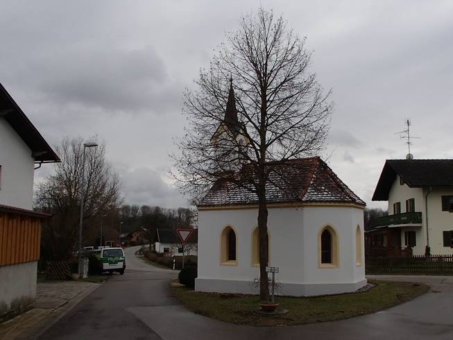 Ludwig-Thoma-Weg Safferstetten / Bad Füssing Km 1,3 / 10.07 Uhr Andreaskirche Safferstetten voraus. Ich glaube, Bad Füssing hat mehr Ortsteile als Hamurg. |