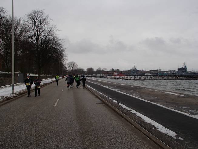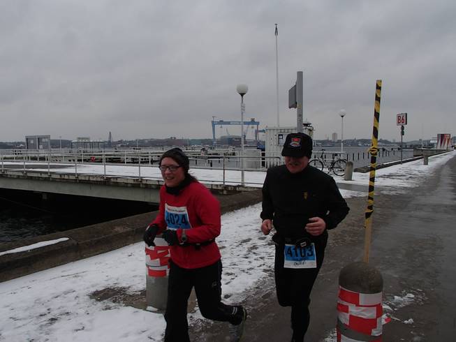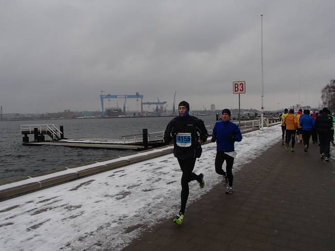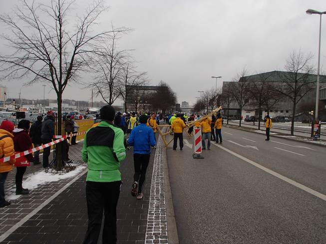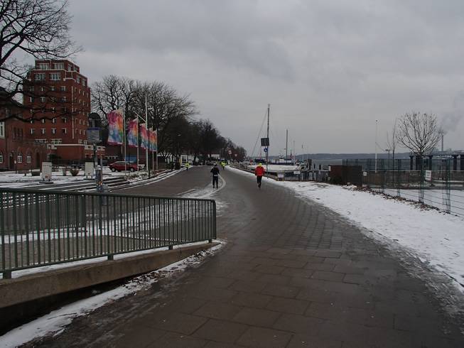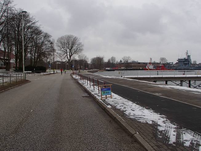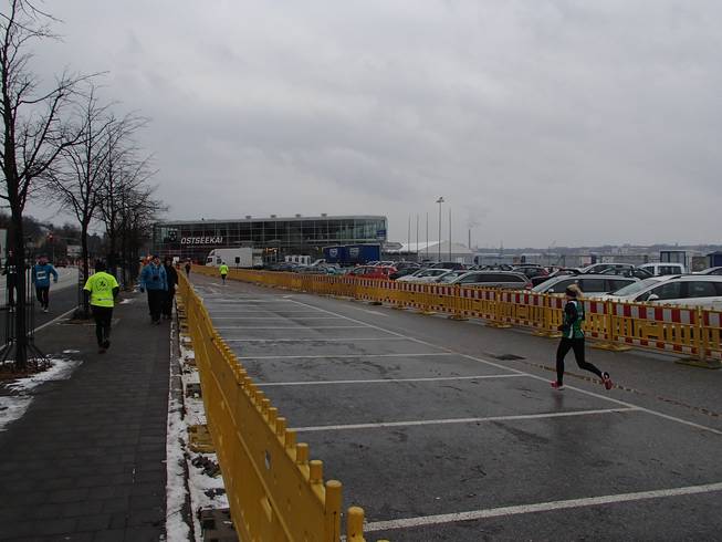 Kiellinie / Runde 4 14.02 Uhr / Km 39,5 Da tauchte auch schon der Ostseekai wieder auf. Noch gab es aber die Südschleife von 2,2 Kilometern zu laufen. |