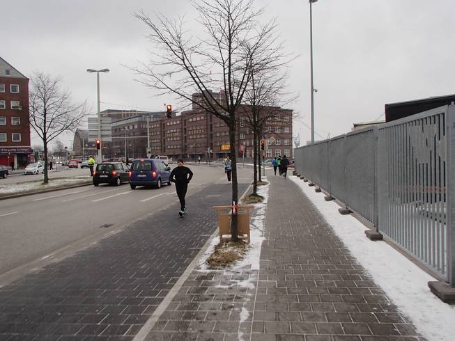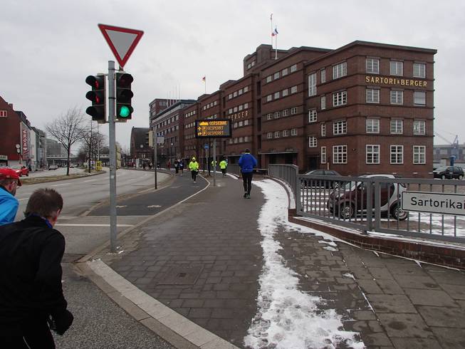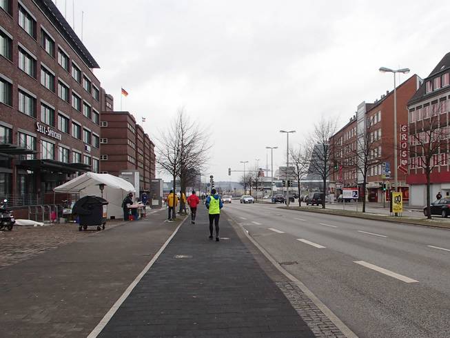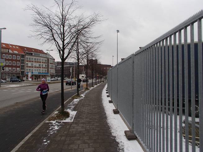 Ostseekai, 14.46 Uhr Am Ende blieb nur noch der elend lange Weg zurück zum Hauptbahnhof. Mit den müden Beinen auch mit Rückenwind mehr Qual als Freude. |