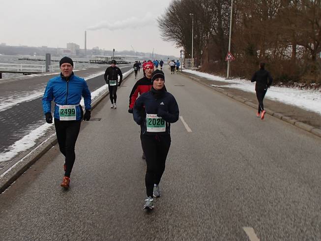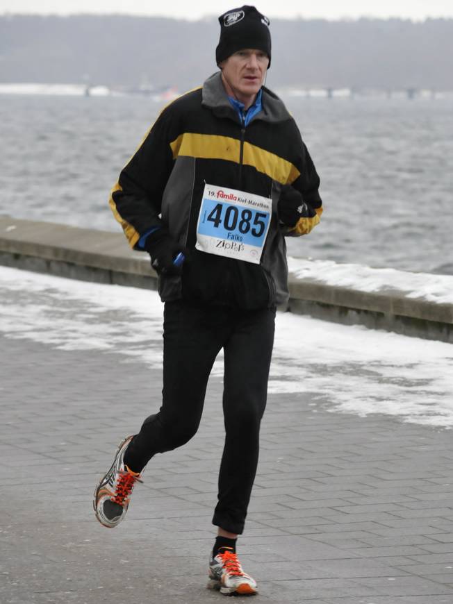 Kiellinie / Runde 2 12.02 Uhr / Km 17,5 Au weia... diesen seltsamen Drehschritt mit dem rechten Bein habe ich mir nach meinem Armbruch 2010 angewöhnt und werde ihn einfach nicht wieder los. Foto: |