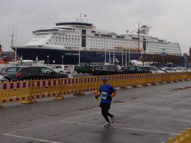 Wall / Runde 4 14.04 Uhr / Km 40,1 Der Läufer hier ist schon im Zielkanal, die MS "Color Fantany" im Hintergrund auf dem Weg nach Oslo. In Oslo laufe ich allerdings erst am 21.09.2013. |