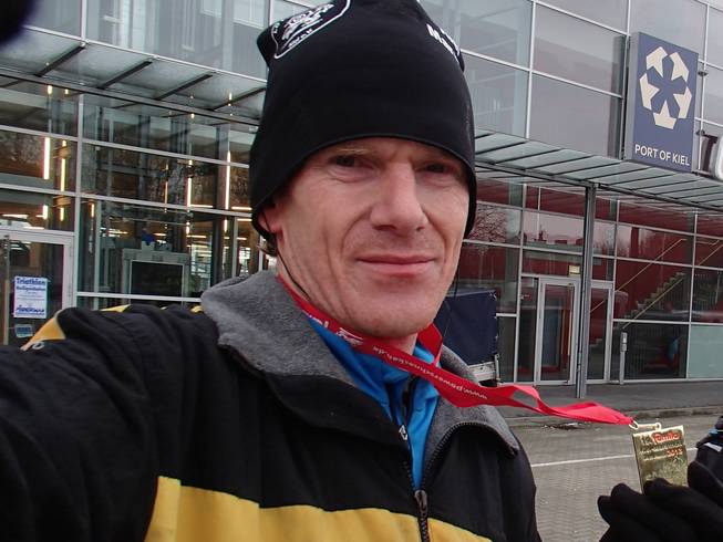 Ostseekai / Finish 14.16 Uhr / Km 42,195 Geschafft! Die Marathon-Medaille Nr. 90 war mein. 3:54:52 Stunden hatte der Kampf gegen Wind und Kälte gedauert. Aber am Ende hatte mal wieder ICH gewonnen. Platz 110 bei 240 Finishern. Platz 102 von 206 Männern. Und Platz 26 von 43 in der Altersklasse M40. |