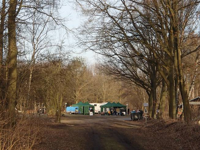 Öjendorfer Park 8.07 Uhr Wie immer war bei meiner Ankunft schon alles fertig und die Frühstarter schon eine Weile unterwegs. Irgendwann organisiere ich mir mal ein Auto, damit ich auch so früh kommen kann, um beim Aufbau zu helfen. |