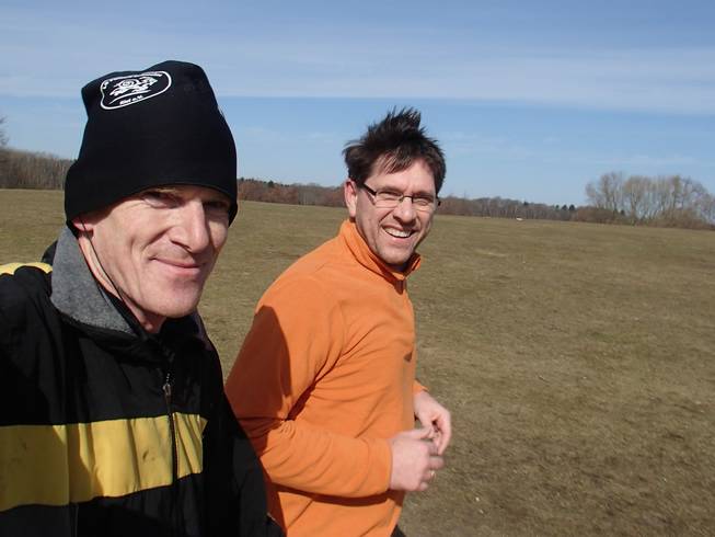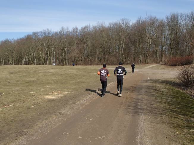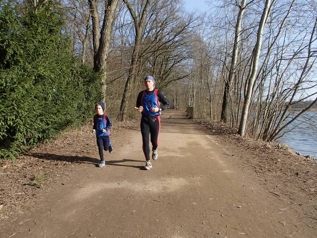 Runde 1 / Km 4,0 9.32 Uhr Kurz vor dem Ende der meiner ersten Runde zog ich unter anderem an Christian (rechts) vorbei, der einen weiteren Marathon auf dem Weg zur Nr. 2000 (geplant am 05.05.2013 in Hannover) sammelte. Und ich sammele noch auf die Nr. 100... |