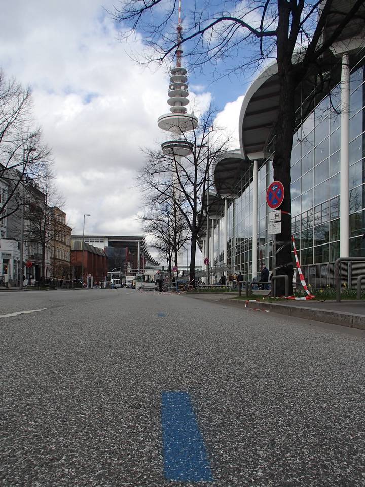 Karolinenstraße / Hamburg-Messe / Heinrich-Hertz-Turm Und hier würde am Sonntag das Schild mit dem Km 42 stehen. Und dann ginge es die letzten Meter auf der Karolinenstraße Richtung Ziel. Wie damals, 16. April 2000, bei meinem allerersten von nun schon 93 Marathons. Wenn ich 1990 einmal nicht mitrechnen stand mir mein 13. Hamburg-Marathon bevor. 2000 und dann seit 2002 jährlich. Und ich war immer noch so nervös wie vor dem ersten Start. Es gibt keinem anderen Marathon vor dem ich so nervös bin wie vor dem in Hamburg. Das fängt an, wenn anderthalb Wochen zuvor die blauen Striche auf der Straße sind und steigert sich dann kontinuierlich bis zum Start (man sollte mich ab Freitag bitte nicht mehr ansprechen). Und wenn dann der Start-schuß gefallen ist, dann ist die Nervosität auf einen Schlag vorbei. Das ist mein Marathon in Hamburg. |
