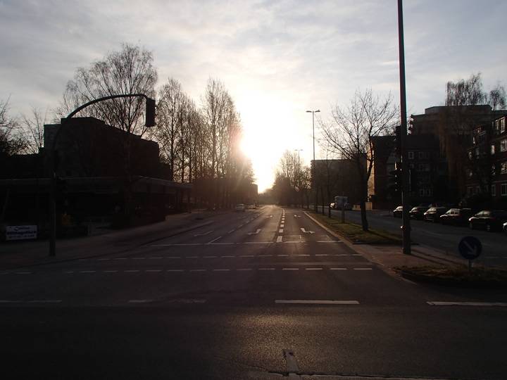 Sydneystraße / Hindenburgstraße Traumhaftes Wetter. Ein schöner Sonnenaufgang. Aber nur 1°C, die allerdings noch auf 14°C klettern sollten. |