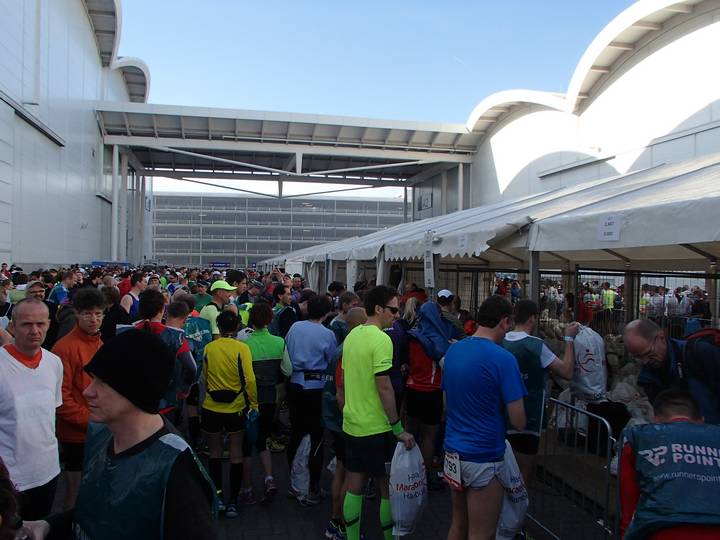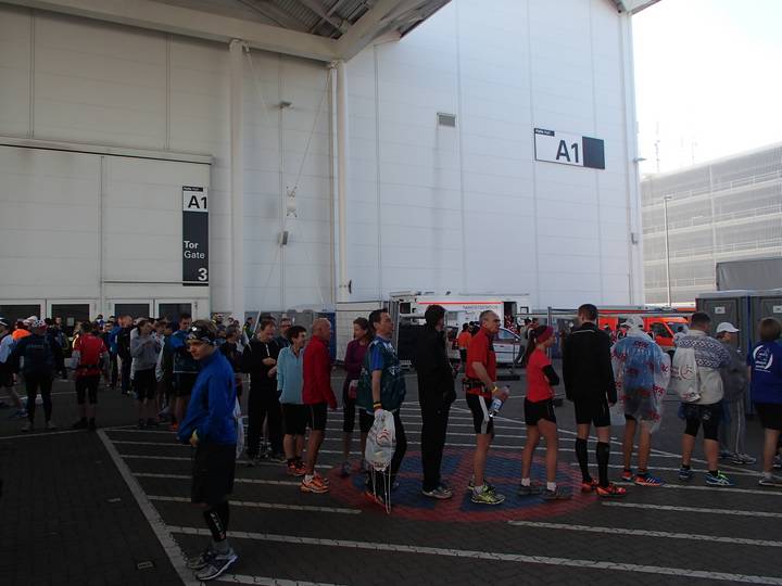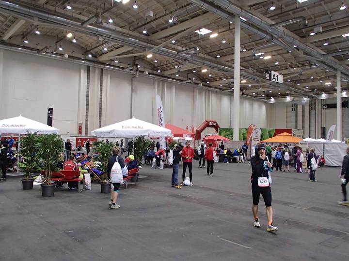 Hamburg-Messe 7.38 Uhr Eine ganze Messehalle nur für die Läufer. Insgesamt hätte man ruhig noch ein paar mehr Sitzgelegenheiten schaffen können, aber dann wäre es wohl zu eng geworden. |