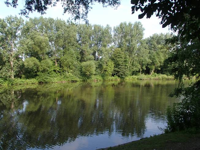 Eppendorfer Mühlenteich, 8.51 Uhr Von mir zu Hause bis zum Güterbahnhof Lokstedt sind es nur 2,7 Kilometer. Bei sonnigen 14°C legte ich den Weg zu Fuß zurück. |