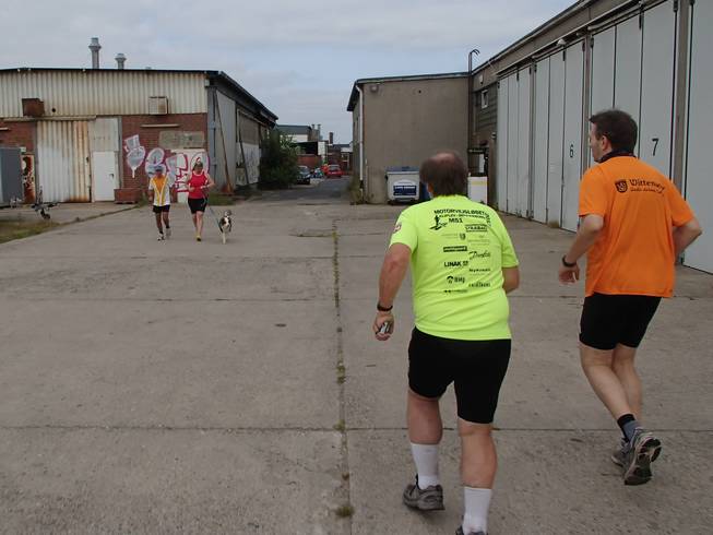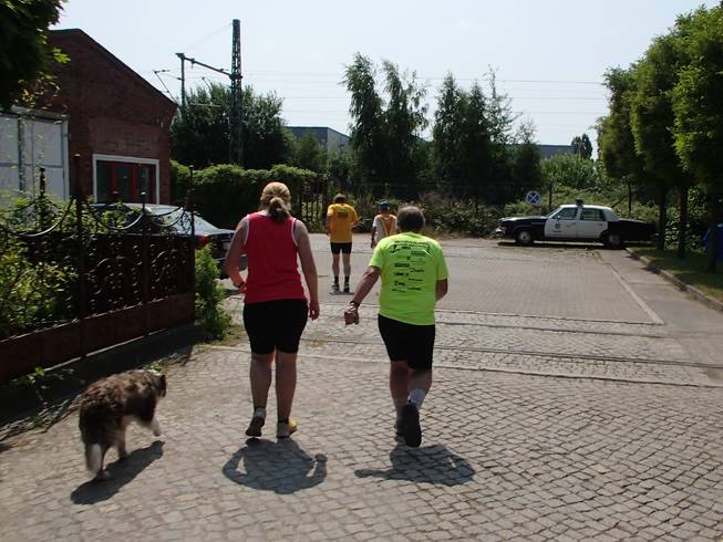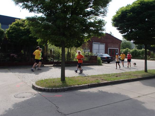 Einführungsrunde 10.06 Uhr / Km 0,1 ... und schon ging es los. Zu Beginn zwei kleine Runde zu je 162 Metern über den Parkplatz des Arbeiter-Samariter-Bundes. |
