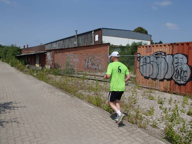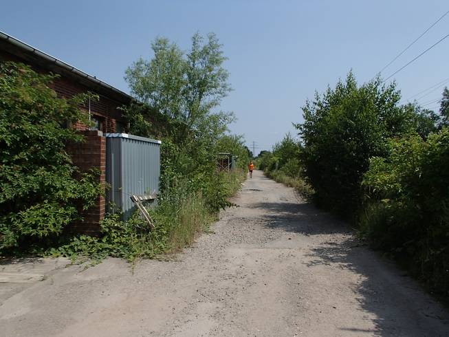 Güterbahnhof Lokstedt Von den Bahnhofsgebäuden ist nicht mehr vier übrig. Nur ein paar Schuppen. Auch von den Schienen ist nicht mehr viel zu sehen. Was lauftechnisch aber auch ganz vorteilhaft war. |
