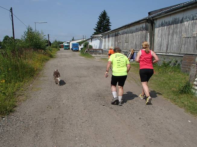 Runde 4 10.33 Uhr / Km 4,7 Endlich mal ein friedlicher Hund. Selbst für einen Läufer-Hund ist das ja nicht selbstverständlich. Dieses Exemplar allerdings machte keine Probleme. Ganz im Gegensatz zu dem Kläffköter vom Restaurant, der einen ständig meinte, anbellen zu müssen. |