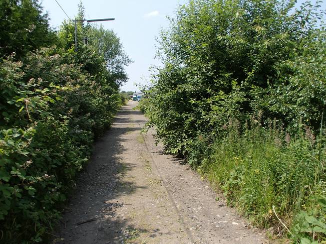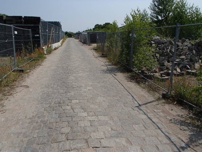 Runde 35 14.00 Uhr / Km 41,5 Noch ein paar Schuppen und links die neue Bahntrasse. |