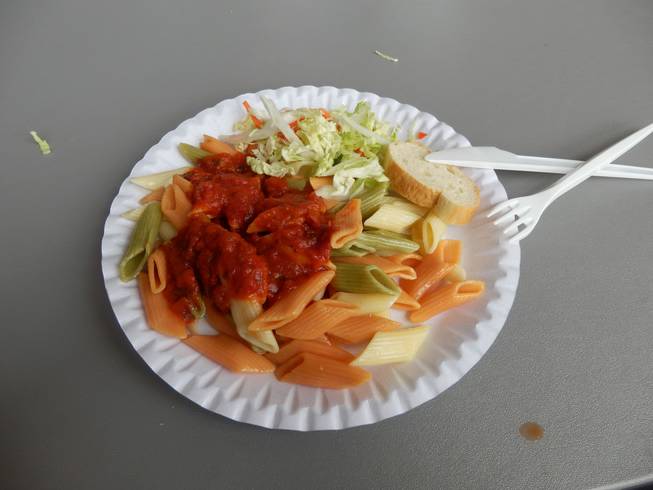 Laugardalshöll Allerdings waren die Nudeln so kalt wie der Salat und das Brot. Nur die Soße war warm. Naja... da hatte ich schon besser gegessen. Und vor allem reichhaltiger. Satt wurde ich da nicht. |