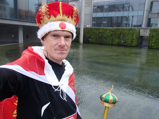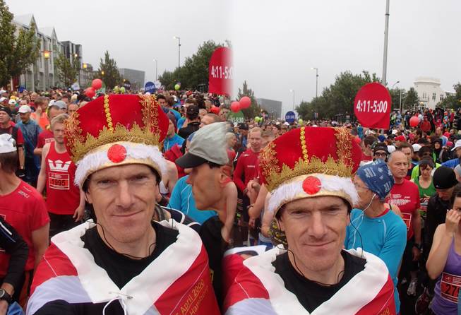 Vonarstræti / Ráđhús Reykjavíkur 7.49 Uhr Da hatte ich so ein hübsches Kostüm dabei und dann so ein Wetter. Regen, heftiger Wind und so fühlte sich die 10°C auch nicht schön an. Das war wohl das mieseste Wetter, das ich jemals vor einem Marathon-Start hatte. |