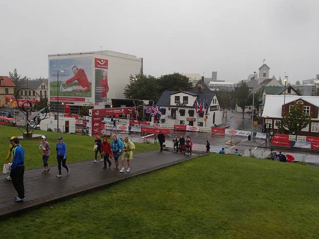 Lækjargata / Útitafliđ 8.30 Uhr Auch wenn es nun schon mein 100. Marathon war, ich war immer noch nervös wie beim ersten Mal. Das wird sich wohl nie ändern. |