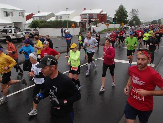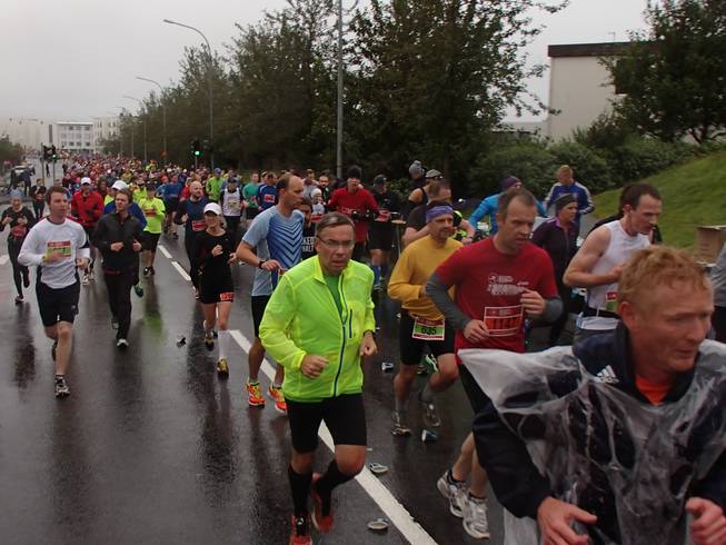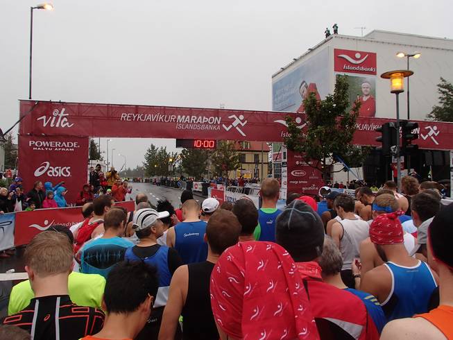 Lækjargata 8.40 Uhr / Km 0,02 Der Marathon (851 Läufer) und der Halbmarathon (2111 Läufer) wurden gemeinsam gestartet. Dazu gesellten sich Startläufer von 35 Marathon-Staffeln (je vier Läufer). |