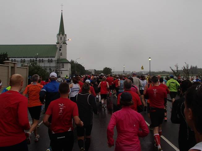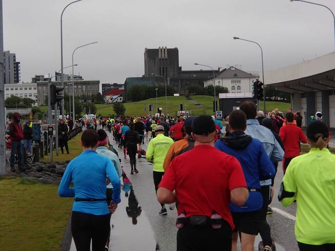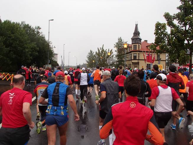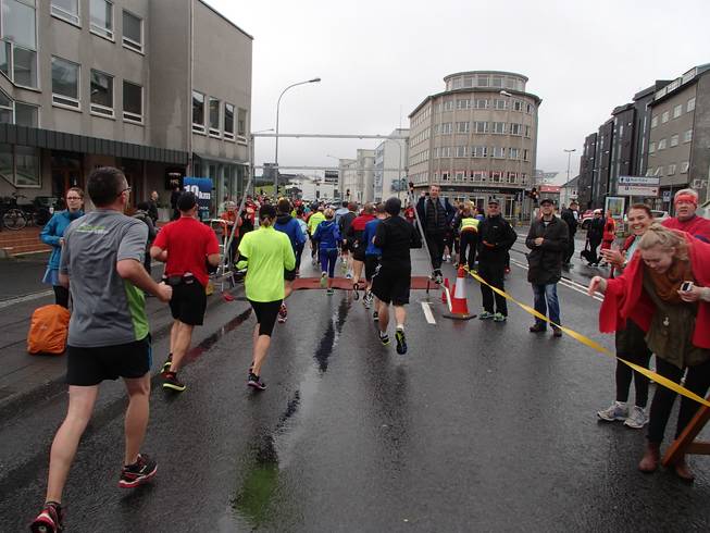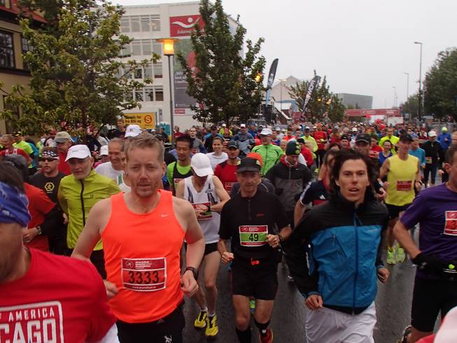 Lækjargata 8.40 Uhr / Km 0,05 Der Anfang war ein wenig wuhlig, aber das ist bei knapp 3000 Startern nicht unüblich. |