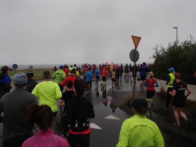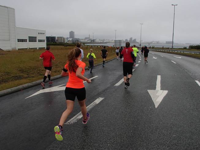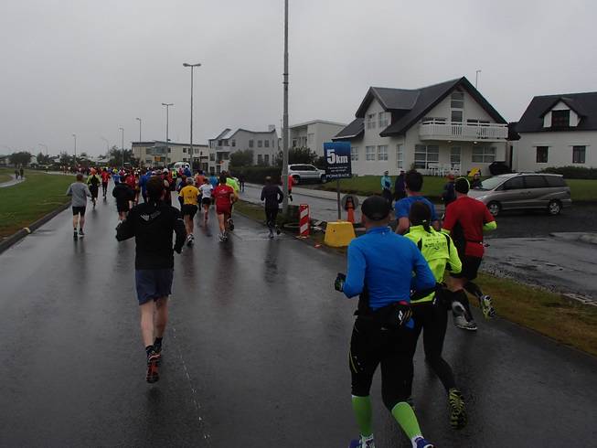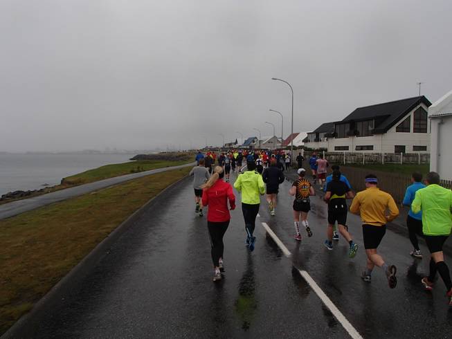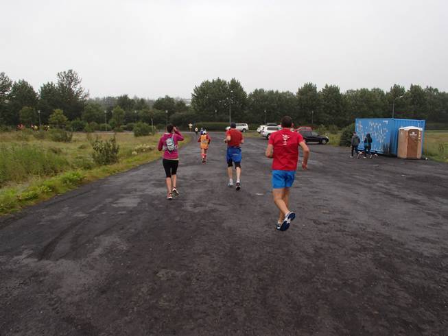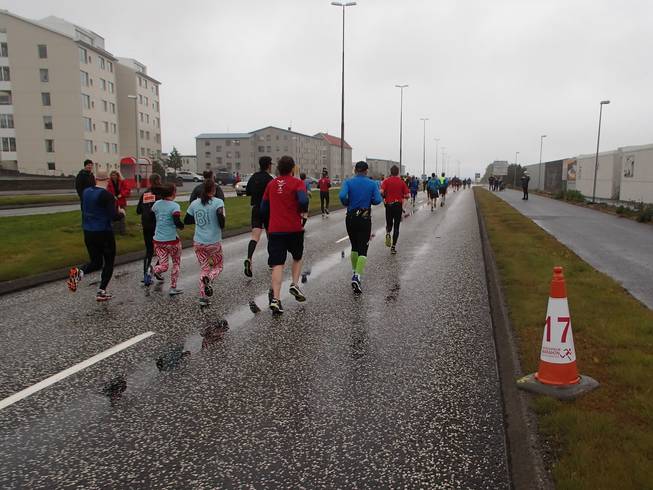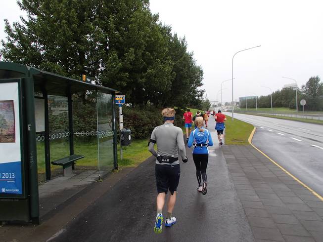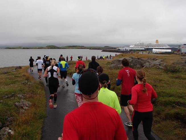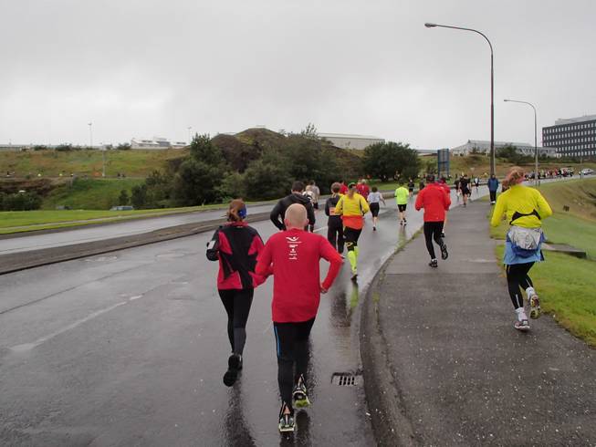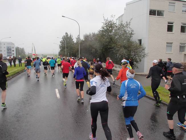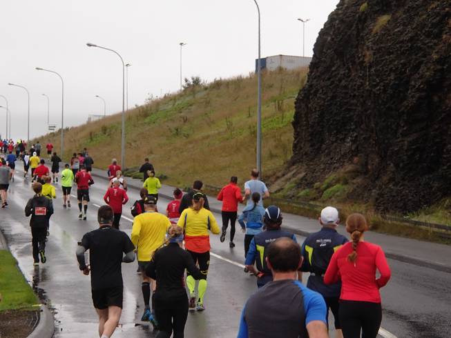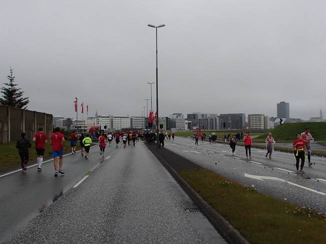 Skothúsvegur 8.43 Uhr / Km 0,5 Gleich zu Beginn wurde ich von den 4:30-Stunden-Läufern überholt. Uhm... |