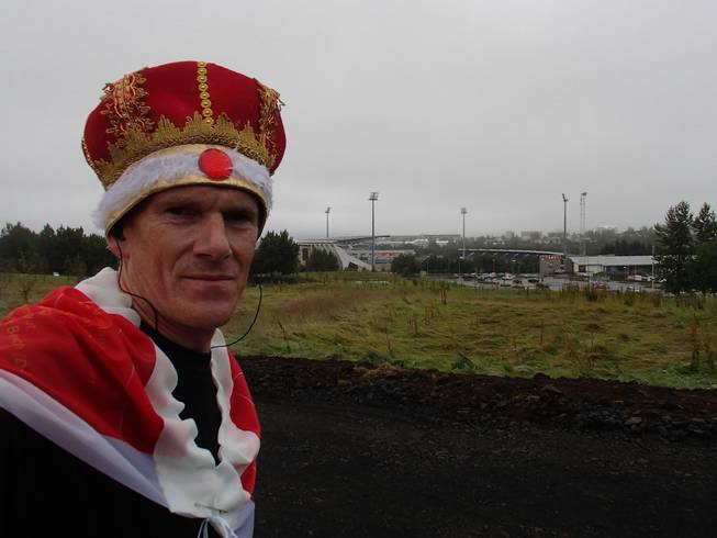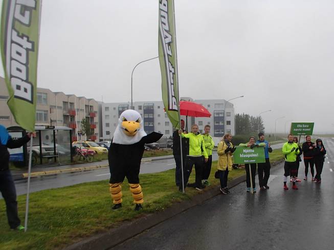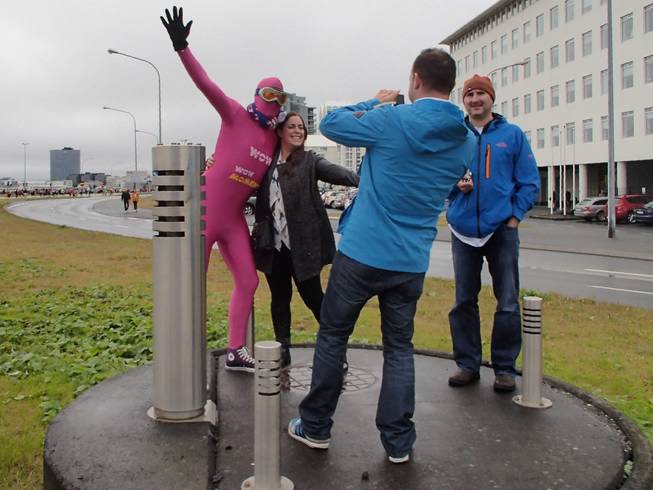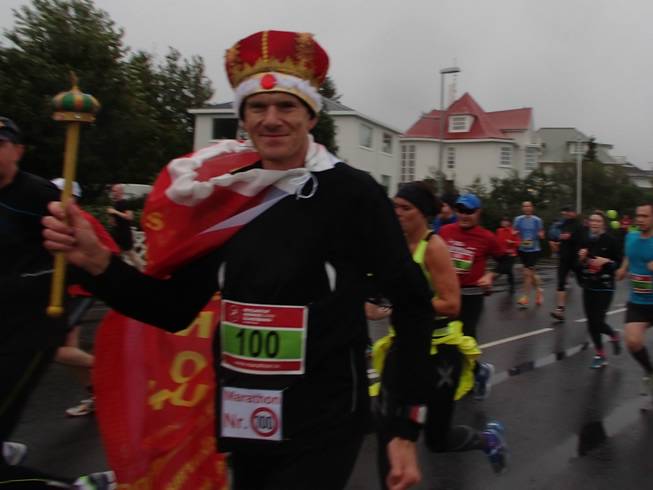 Kalkofnsvegur 9.38 Uhr / Km 10,7 Auch eine sehenswerte Verkleidung. Das war aber kein Läufer. |