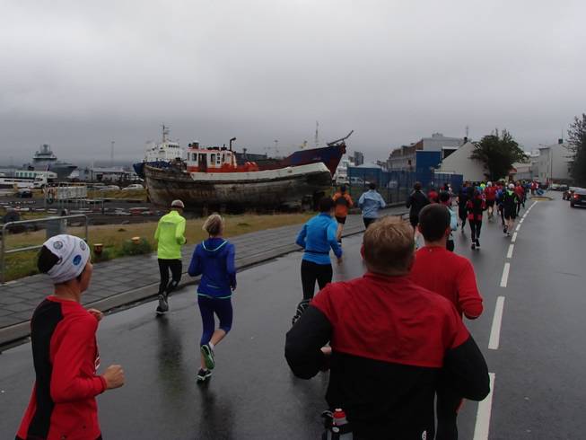 Grandagarđur 9.30 Uhr / Km 9,2 Aber es war a noch früh im Rennen. Und was wußte ich, was da noch alles kommen würde. |