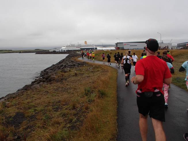 Klettagarđar / Shore Walk 9.55 Uhr / Km 13,9 Und was den Kreuzfahrer dort vorne angeht, es wäre schon verwunderlich, wenn nicht zumindest ein paar der Passagiere hier mitgelaufen wären. |