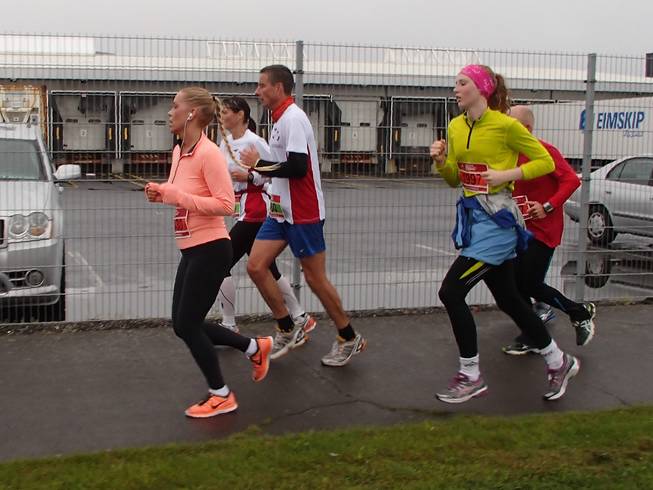 Eiđsgrandi 9.21 Uhr / Km 7,5 Auf den mp3-Player hatte ich mir einen wilden Mix aus isländischen Liedern, aktuellen Hits und Oldies von frühen Marathons geladen. Schon von daher hatte ich gar keine Lust, hier schneller als 3:53 Stunden über den Kurs zu eilen. |