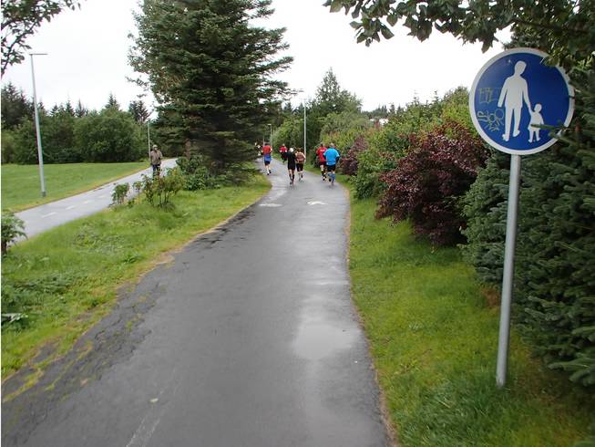 Trađarland / Hjólastígur 10.57 Uhr / Km 25,0 Und schon waren es 25 geschaffte Kilometer. Nur 27:21 Minuten hatte ich für die fünften fünf Kilometer gebraucht. 2:16:21 Stunden insgesamt auf der Uhr. |