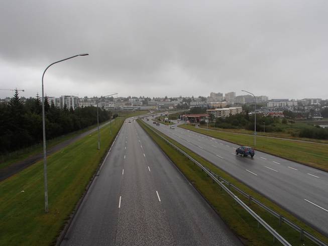 Fossvogsvegur / Kringlumýrarbraut 11.10 Uhr / Km 27,4 Schöne breite Straße und recht wenig Verkehr. Da lebt das Autofahrerherz doch auf. |