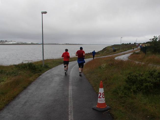 Skeljanes / Reykjavíkurflugvöllur 11.24 Uhr / Km 30,0 Wenn ich weiterhin plante, nicht schneller als 3:53 Stunden zu laufen, dann wäre es an der Zeit, mal Tempo herauszunehmen. |