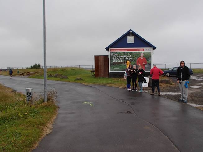 Nessvegur 11.45 Uhr / Km 33,4 Für Isländer ungewöhnlich blieben manche trotz typisch isländischem Wetter doch lieber in Nähe des Hauses. |