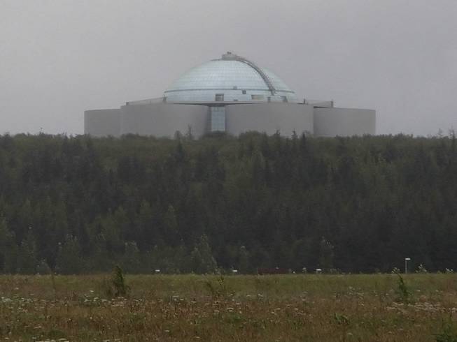 Fossvogur / Reykjavíkurflugvöllur 11.23 Uhr / Km 29,8 Und zum geothermalen Wasserspeicher Perlan auf dem Öskuhliđ konnte man auch gucken. Von da oben aus wird die Bucht mit dem Strand zuvor geheizt. |