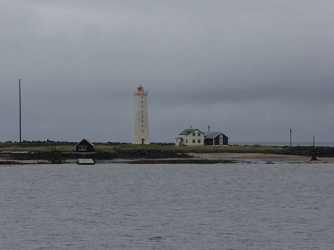 Seltjarnarnes / Grótta 12.03 Uhr / Km 36,7 Blick auf den Leuchtturm auf Grótta, der Westspitze Reykjavíks. Ich finde, da hätte man auch noch drum herum laufen können. |