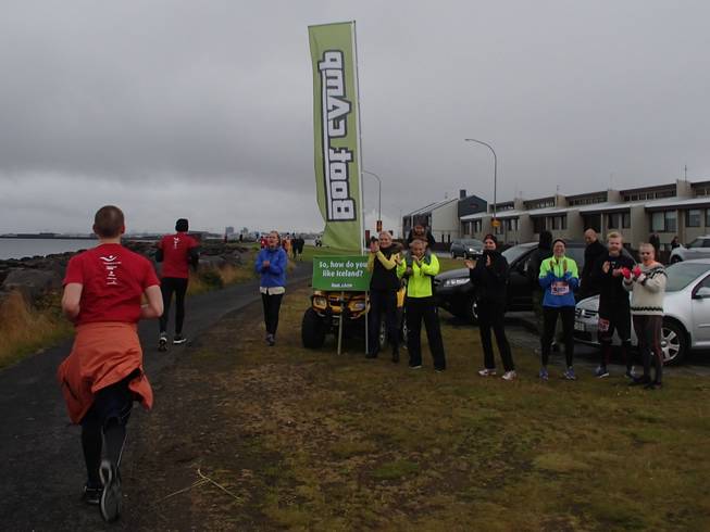 Fossvogur / Nauthólsvik 11.19 Uhr / Km 29,2 Und plötzlich im Nirwana tauchen mal wieder ein paar Zuschauer auf. |