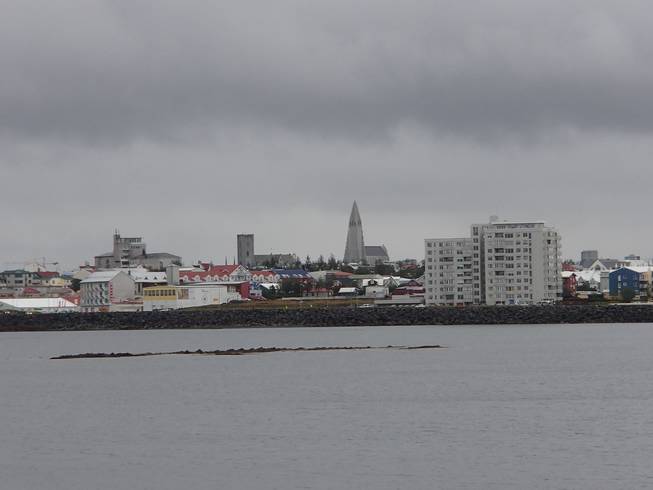 Norđurströnd 12.15 Uhr / Km 38,7 Reykjavík mit der Hallgrímskirkja. |
