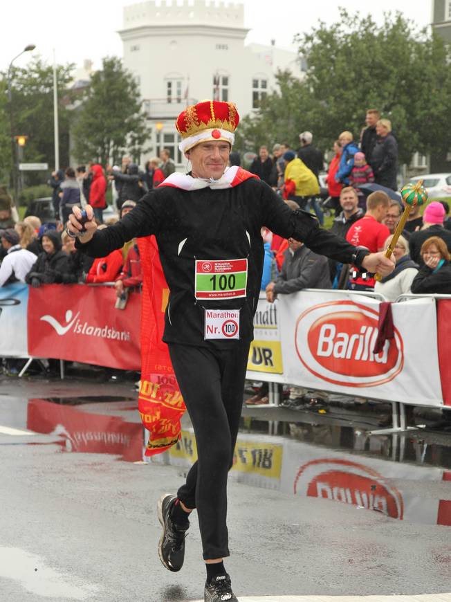 Lækjargata 12.34 Uhr / Km 42,18 Nur noch ein paar kleine Schritte. Es waren um die fünf Millionen Schritte, die ich für 100 Marathons gebraucht habe. |
