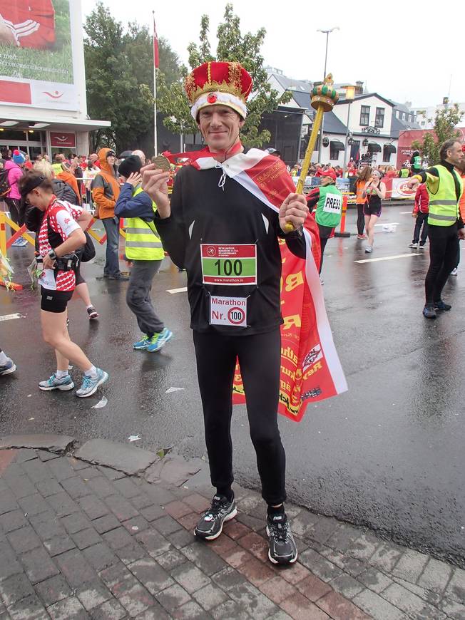 Lækjargata 12.35 Uhr / Km 42,195 Geschafft. Nach 3:53:52 Stunden war ich im Ziel. 100 Marathons(!) waren komplett. 13 Jahre 4 Monate 8 Tage 5 Stunden und 18 Minuten hatte es gedauert, die Läufe zu sammeln. Mal abwarten, wie lange es bis zur Nr. 200 dauern wird. |